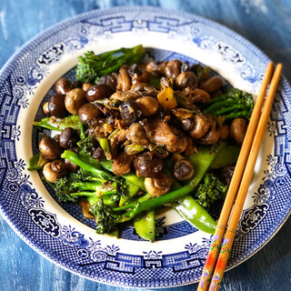 I generally really LOVE mushrooms so any old excuse to eat them ( it's just a shame they are so expensive here). Anyhoo, this stir fry is so simple and makes for a great side to a noodle or rice dish; better still, you can eat it on its own as is. It's packed with some super flavors. The key thing to enjoying this dish is not to overcook the vegetable.